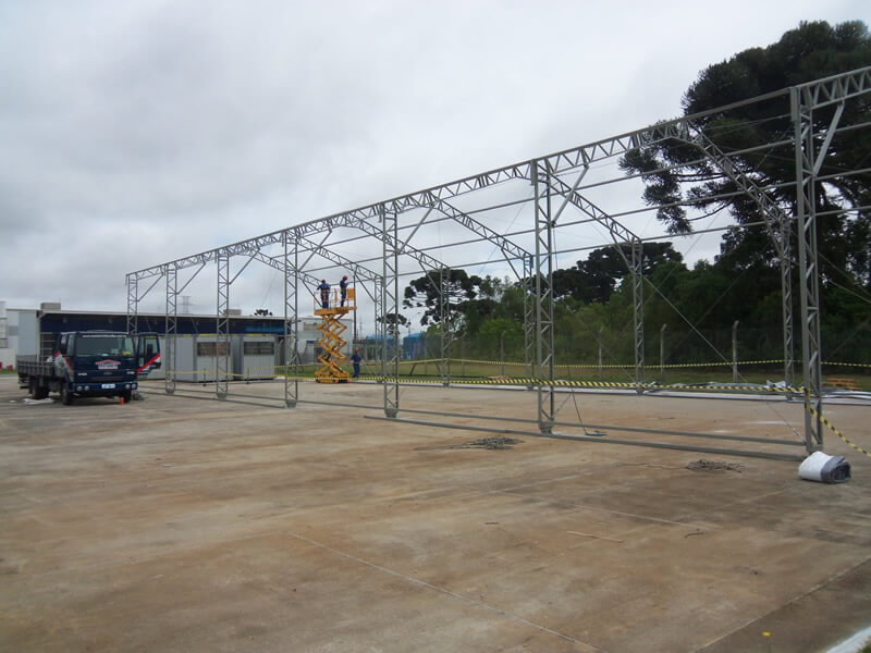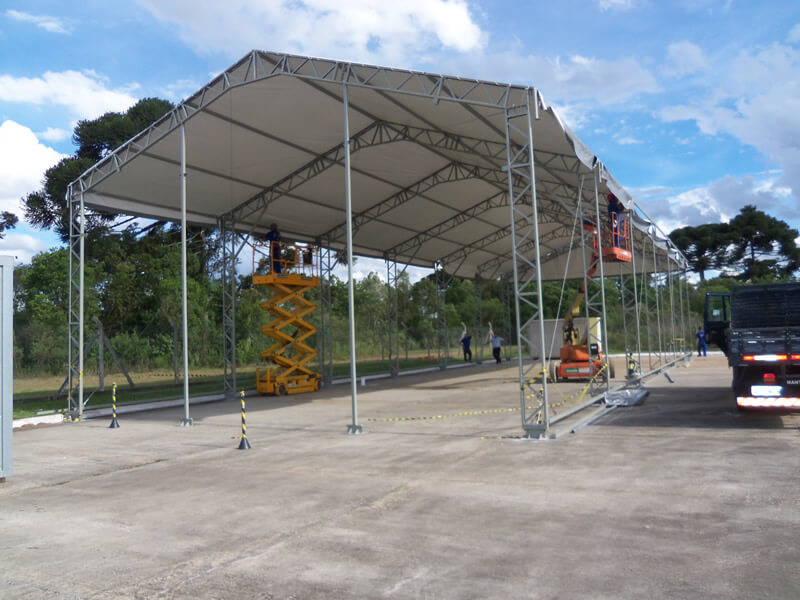 Portanto, o Galpão Lonado Duas Águas é uma solução rápida e segurança na montagem, sendo também adaptável a qualquer tipo de ambiente e solo (desde que nivelado e compacto).