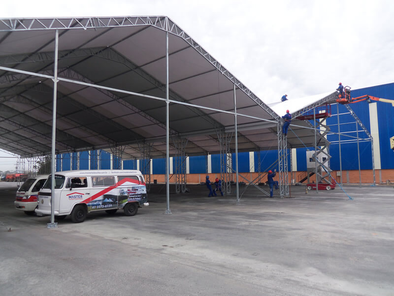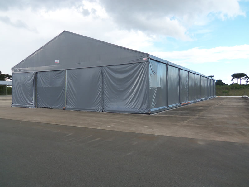 Aqui na Tendas Araucária você encontra diversas opções e tamanhos de Galpão Lonado modelo duas águas para armazenagem e logística.